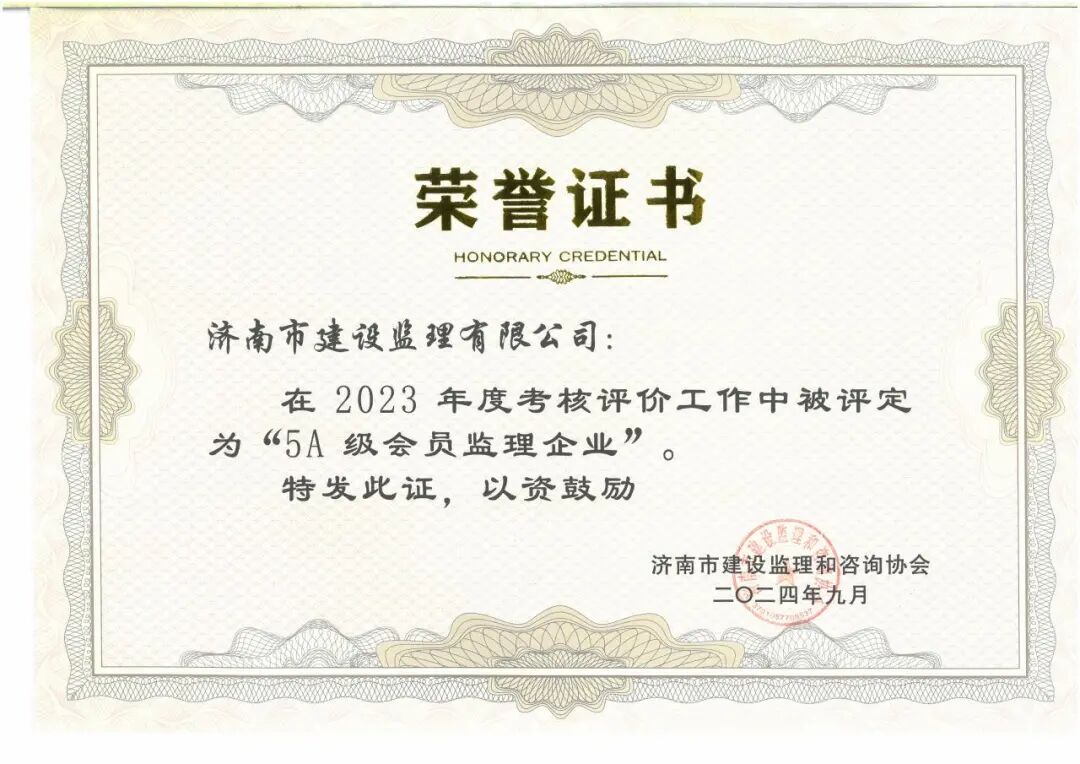 兩項榮譽的獲得,不僅是一個稱號,更是一份沉甸甸的責任。展望未來,濟南監(jiān)理將繼續(xù)秉持“友愛誠信、科學公正、優(yōu)質高效、求實創(chuàng)新”的企業(yè)精神,不斷提升自身實力,為客戶提供更加優(yōu)質的服務。
