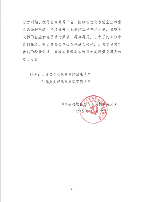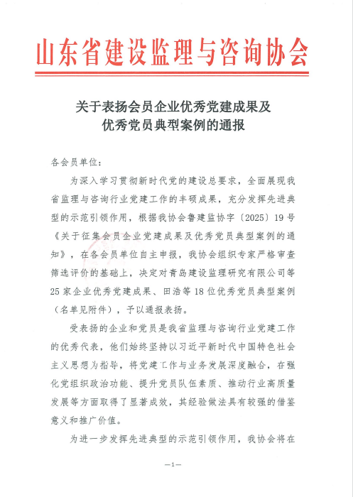 喜報!濟(jì)南監(jiān)理榮獲山東省建設(shè)監(jiān)理與咨詢協(xié)會“會員優(yōu)秀企業(yè)黨建成果”及“優(yōu)秀黨員典型案例”通報表揚